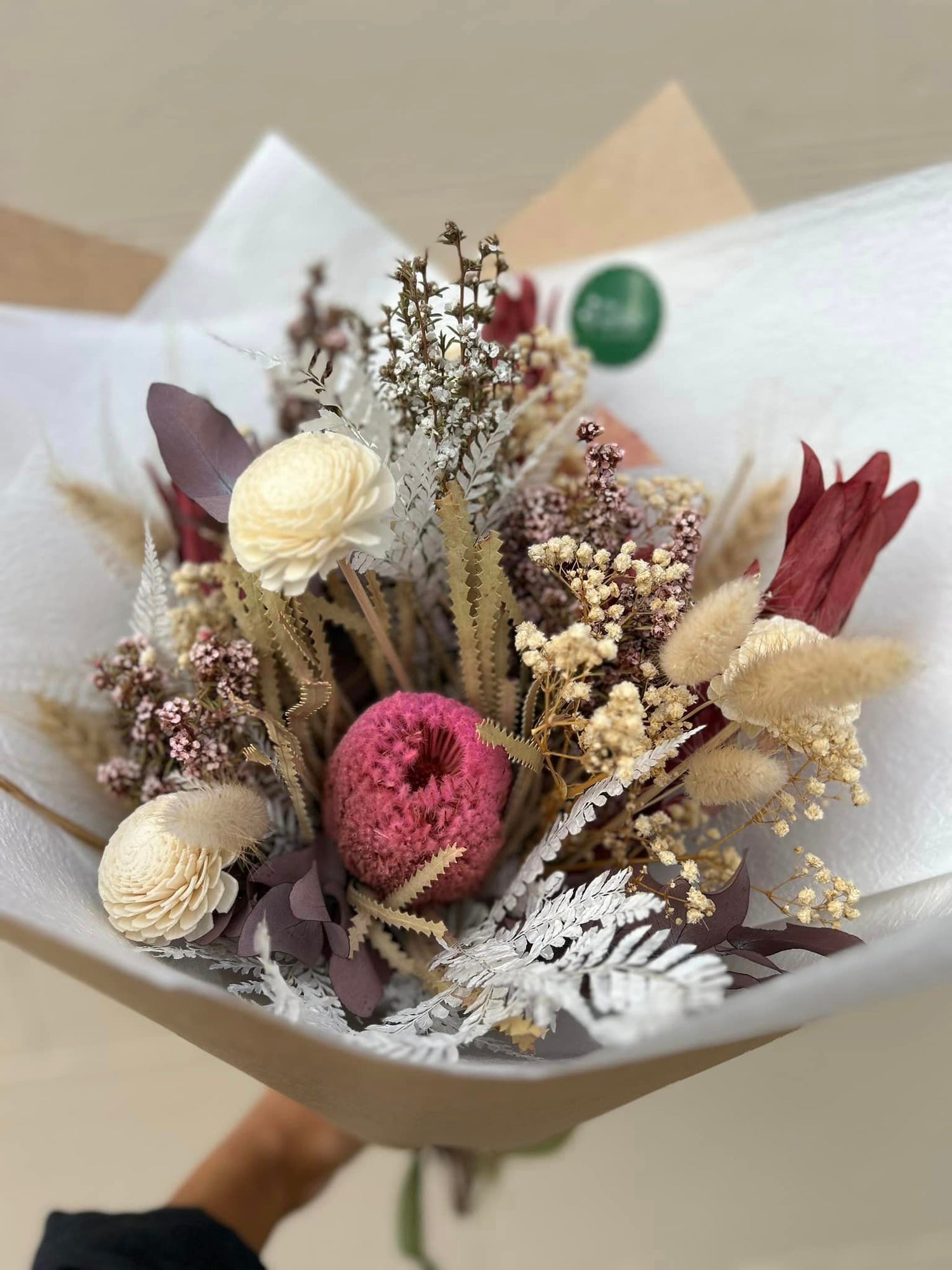 We are a proud monthly contributor donating one of our dried + preserved arrangements towards the hamper which is then delivered to a local family in need.
