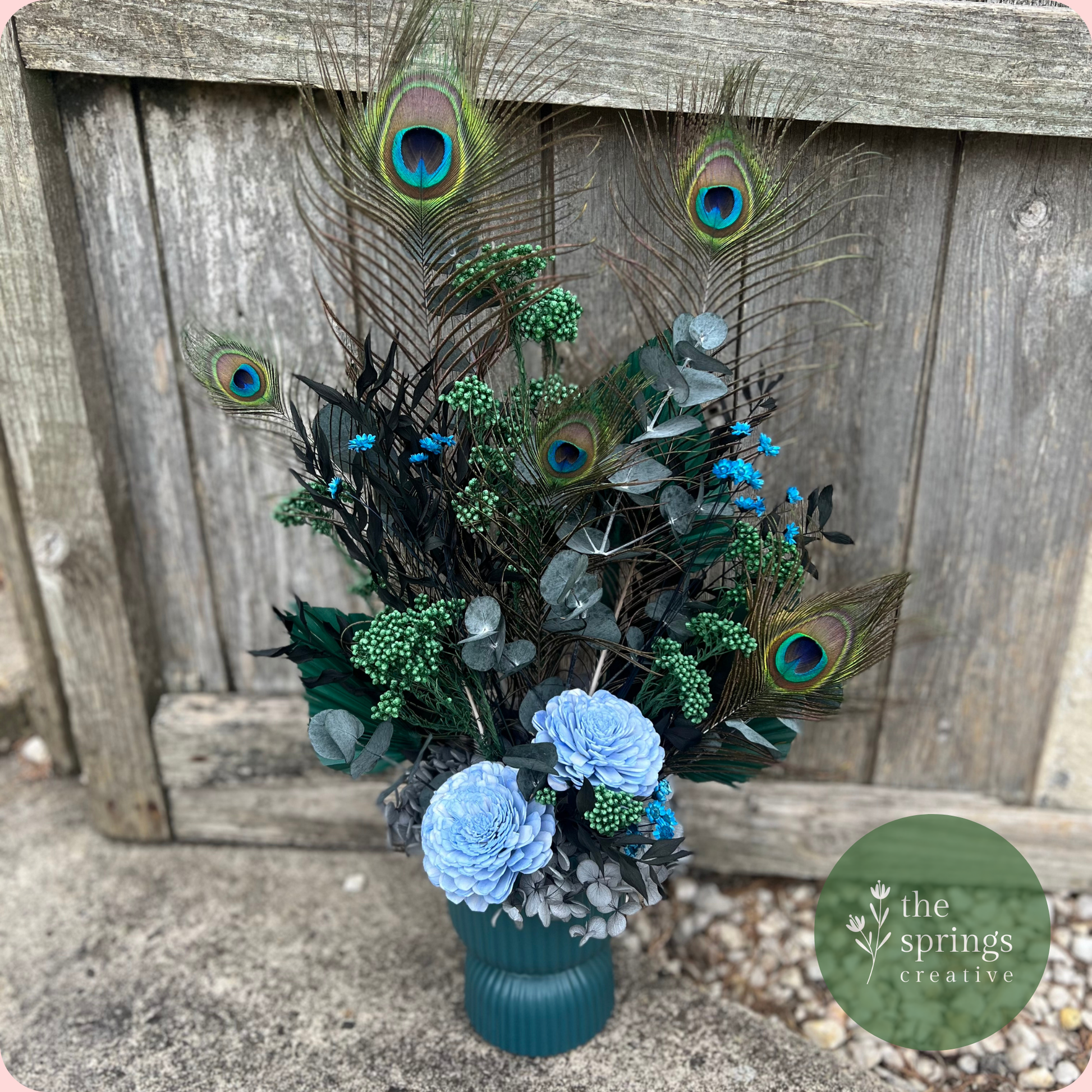 stunning dried + preserved floral arrangement - this creation is a ready to go - “one-off design” - we are happy to replicate however cannot recreate another one exactly the same - consider this one a unicorn!